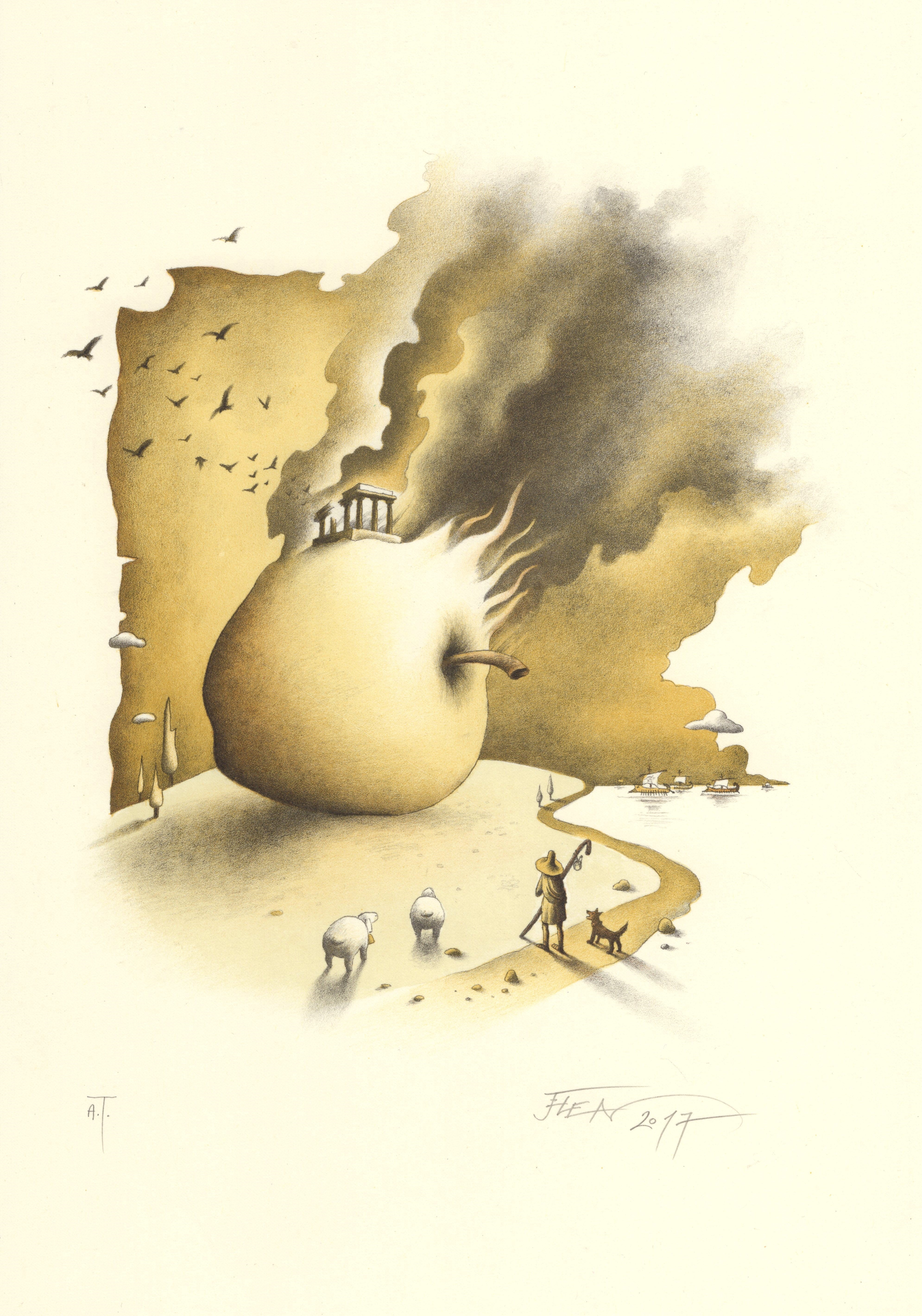 Litografie AT, 17,5 x 24 cm, grafický list, signováno O. Jelen. Volný grafický list - nerámováno