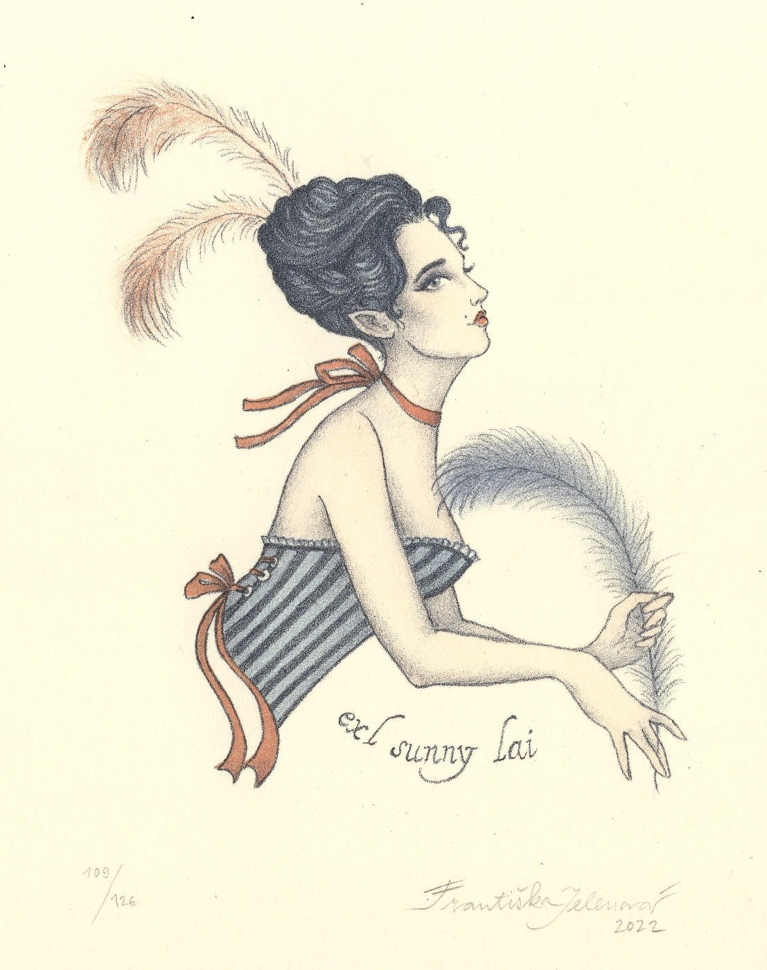 Litografie 9,6x12 cm, grafický list 115/126, signováno Františka Jelenová, volný grafický list - nerámováno