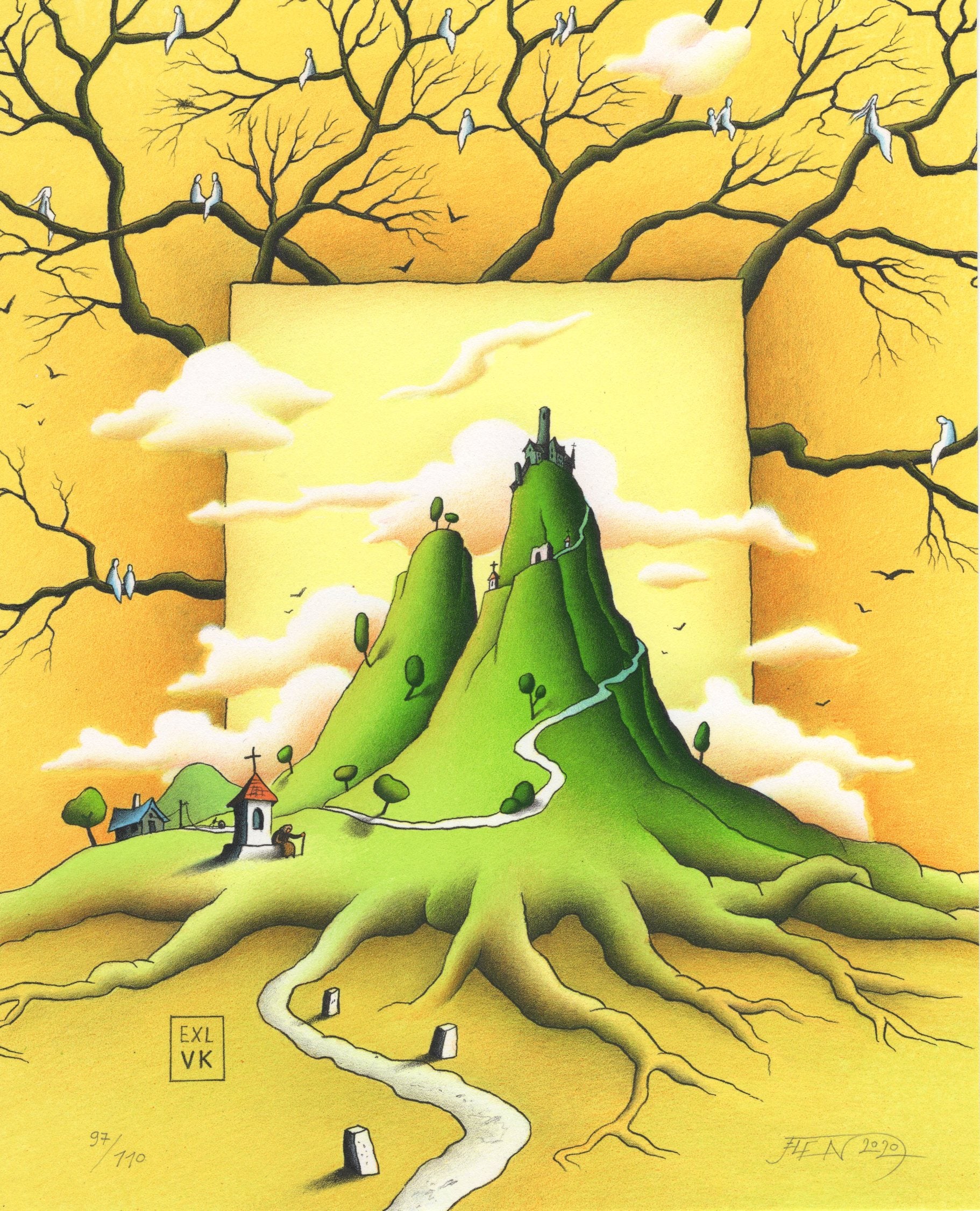 Litografie 96/110, 16x20 cm, grafický list, signováno O. Jelen. Volný grafický list - nerámováno