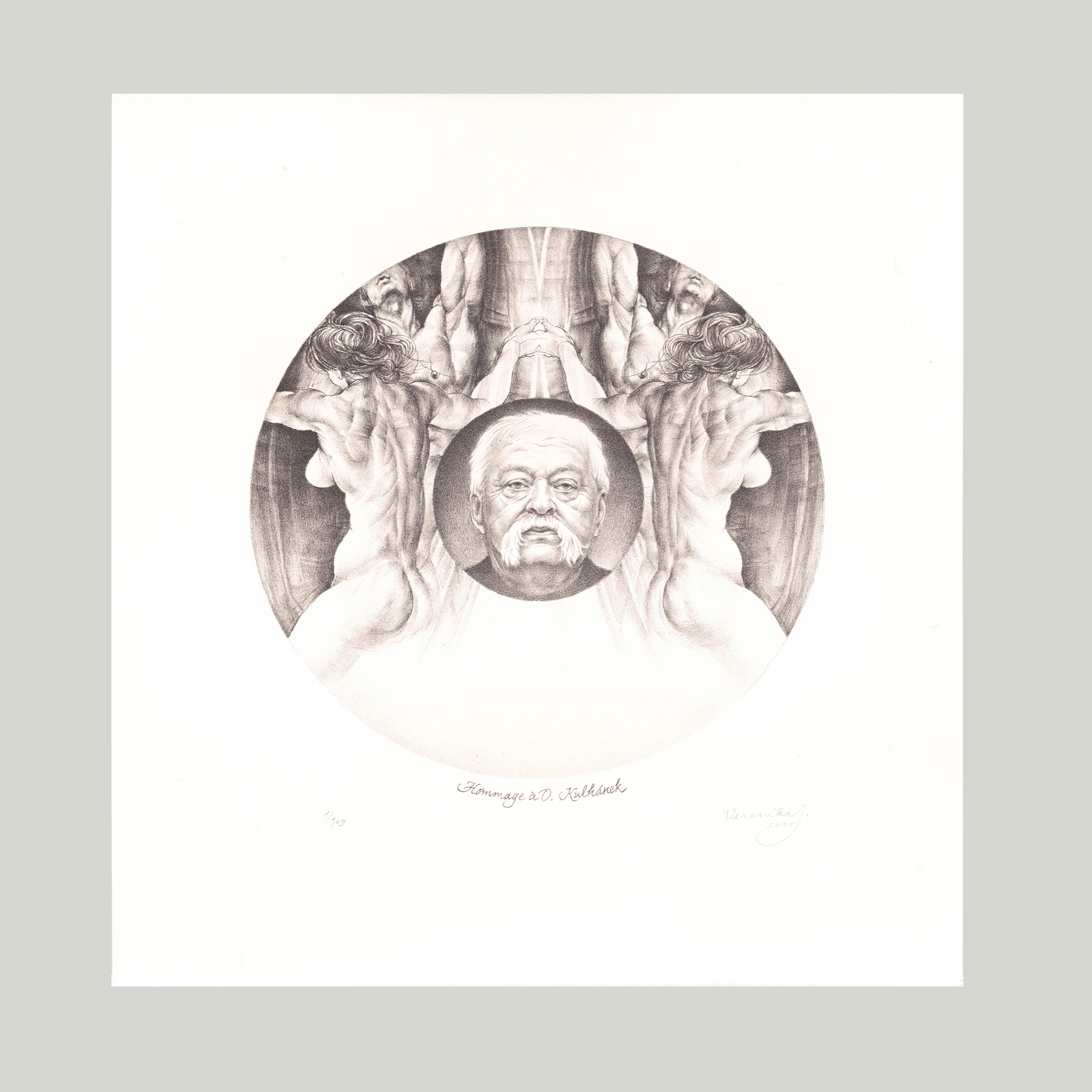 Litografie, formát 24,7x26,5 cm, bez rámu. Limitovaná edice tohoto díla vznikla ve spolupráci s výtvarnicí Veronikou Jelenovou, tiskařem Petrem Korbelářem a Českou Galerií Moderního Umění. Ukázka tisku této litografie proběhla v rámci workshopu 25. 11. 2025 v naší Galerie.