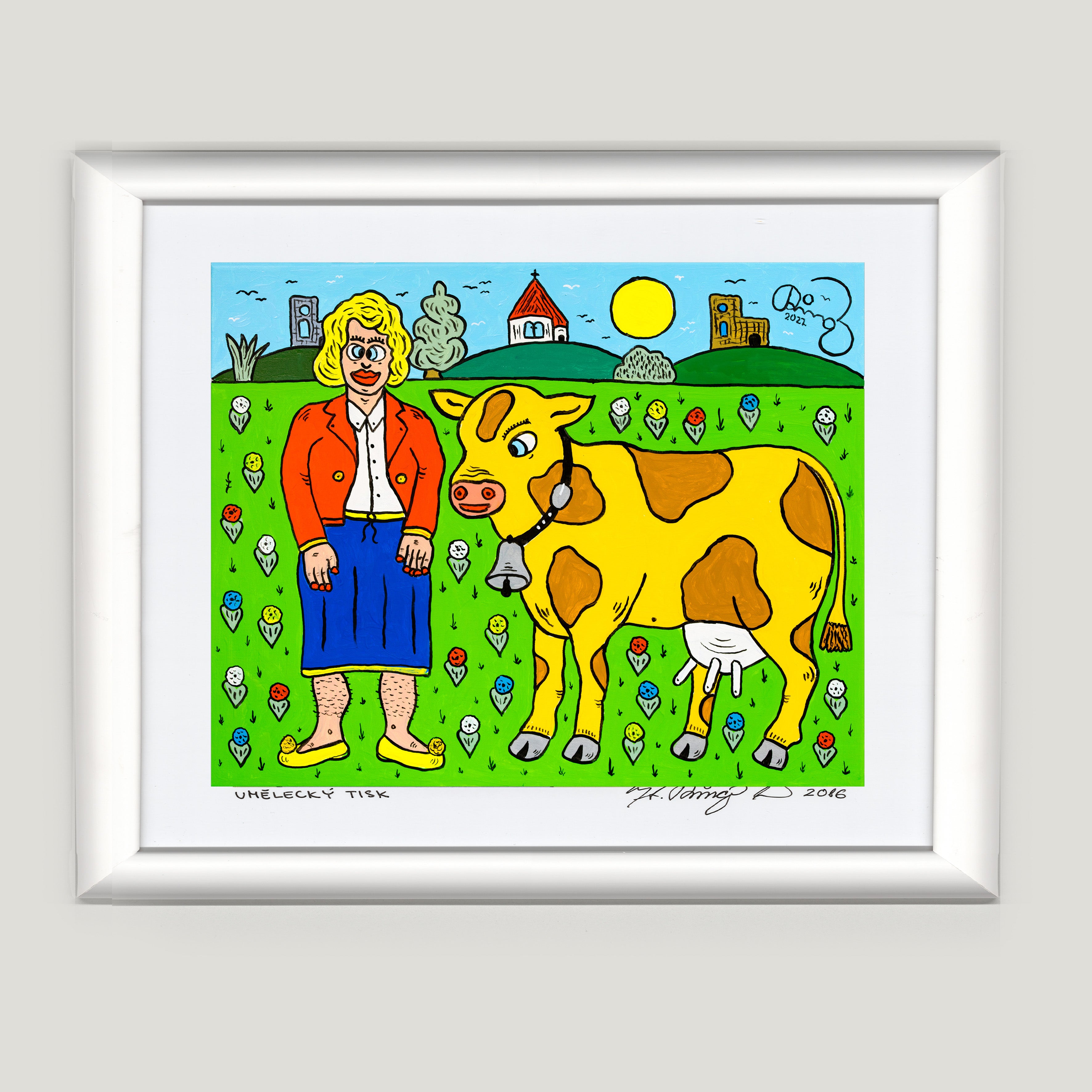 Umělecký tisk obrazu podepsaný autorem, cena včetně zasklení a rámu.