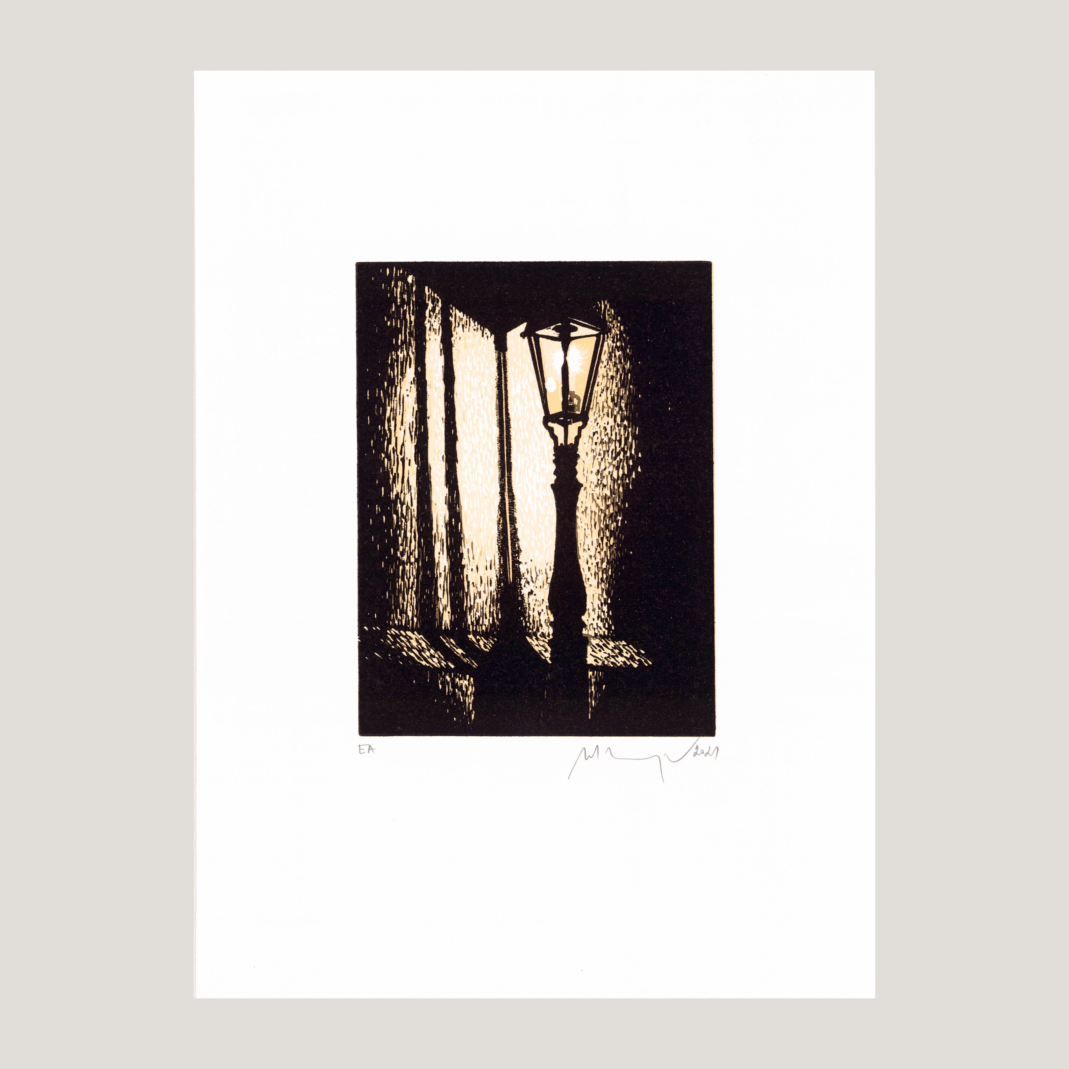 Barevný linoryt tisková plocha 11x15 cm, grafický list 21x29,6 cm číslováno EA, signováno M. Manojlín 2021