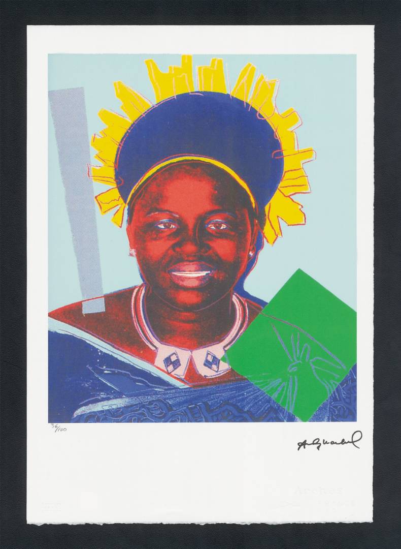 Certifikovaný grafický list 38 x 56 cm v limitovaném nákladu 100 kusů. Tisk č. 36 z nákladu. Tisk zobrazuje africkou královnu Ntombi Twala.