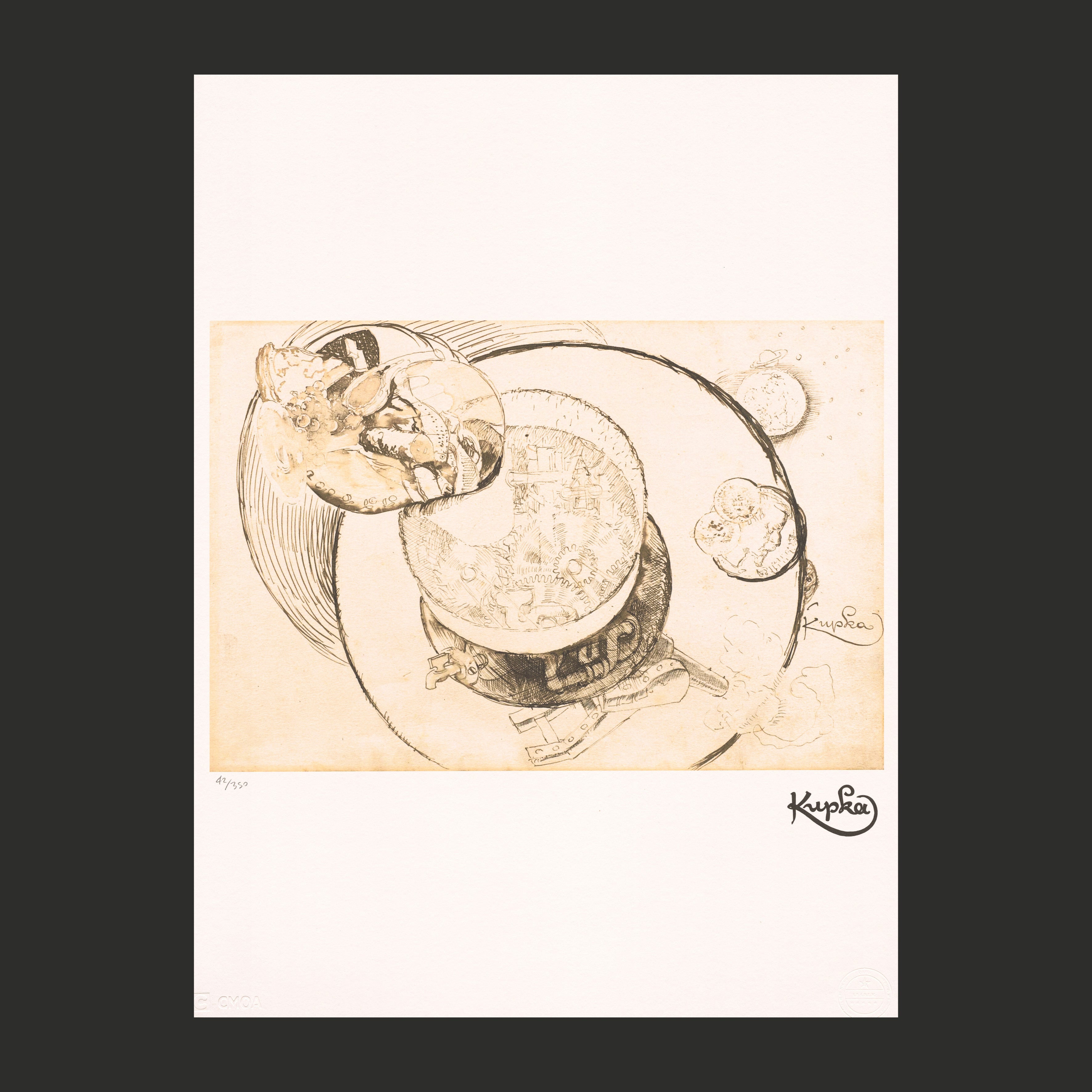 Certifikovaný grafický list, 50 x 70 cm. Číslováno 42/350. Certifikát, ruční papír Cotton Cream. Signováno vpravo dole Kupka. Slepotiskové razítko: CMOA MUSEUM, SPADEM PARIS. Licence Frank Kupka Atelier 7, Rue Lemaitre Puteaux - Seine France.