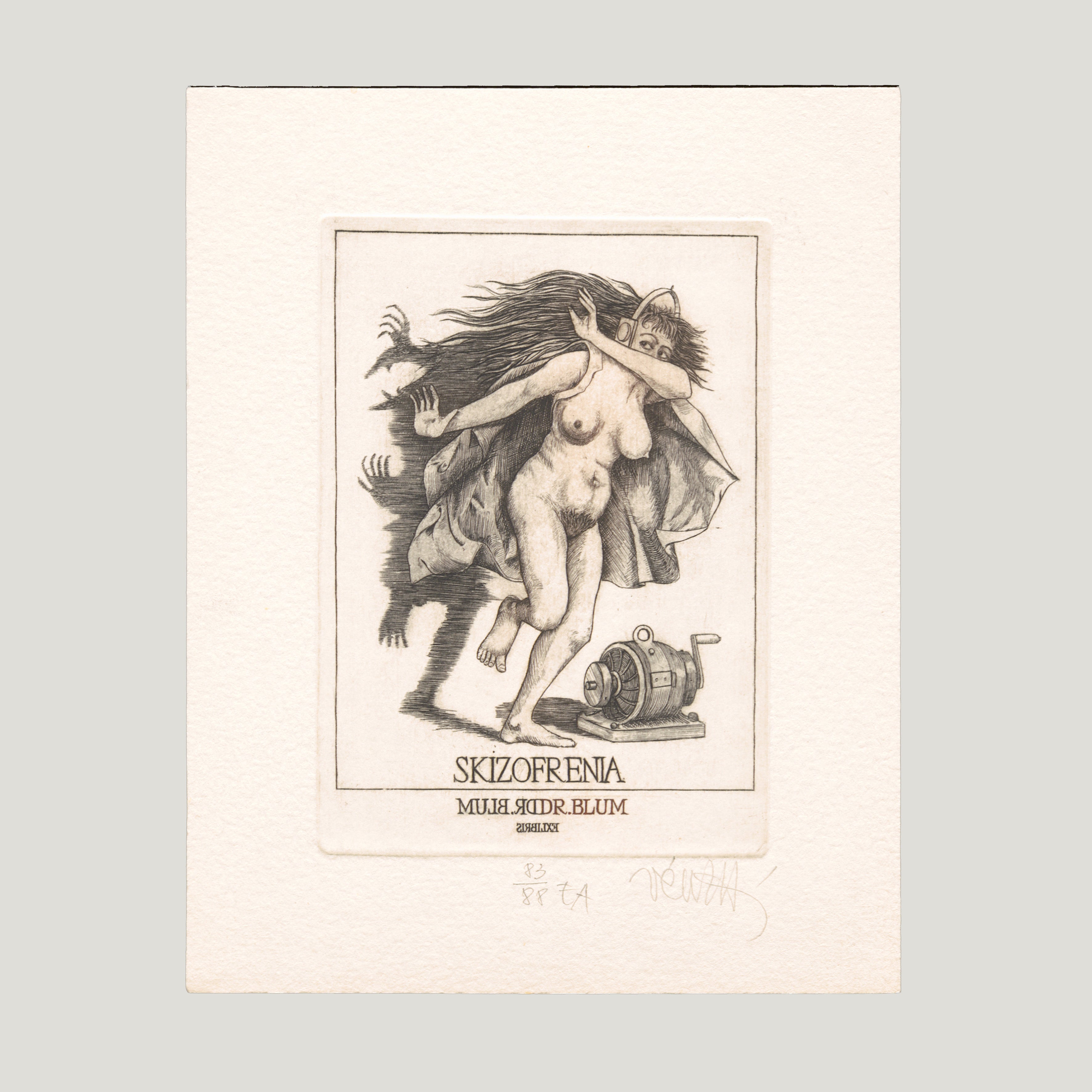 Mědiryt, lept 8,2x12 cm tisková plocha, 13x17 cm grafický list, číslováno VI/XV E.A., signováno Vén Zoltán. Volný grafický list - nerámováno