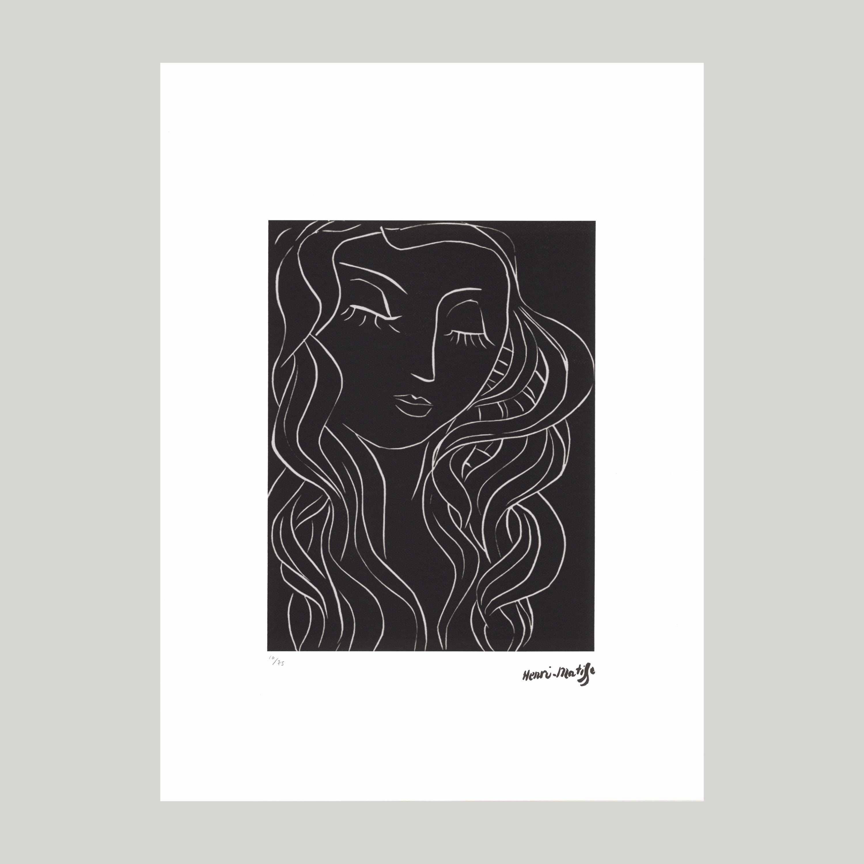 Certifikovaný grafický list, 50x70 cm. Číslováno 10/75. Certifikát, ruční papír Fabriano Cotton. Signováno vpravo dole Henri Matisse. Slepotisk S.P.A.D.E.M. Paris. Číslováno tužkou