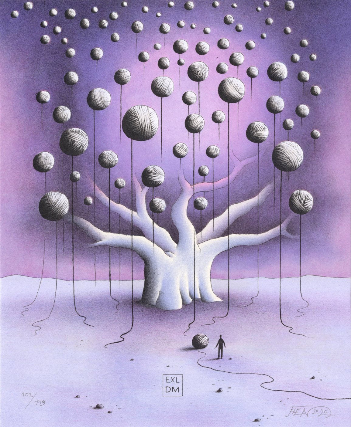 Oldřich Jelen (*1961) je český výtvarník, který žije a tvoří v Praze. Po třech letech studia na pražské AVU začal pracovat jako ilustrátor v předních českých časopisech a novinách. Nejprve přispíval do Národních Listů, kde se potkal s textařem Michalem Horáčkem. Toto setkání bylo pro jeho další tvorbu zásadní. V roce 1993 v časopise Mladý Svět ilustroval Horáčkovy Dopisy z lásky a nenávisti. Tím se dostal do povědomí široké veřejnosti jako nový originální tvůrce. V roce 1998 začal pracovat jako ilustrátor pro nakladatelství Albatros, vytvořil ilustrace k desítkám knih. Již 25 let se věnuje grafické technice tisku z kamene (litografii), ve které zhodnocuje svoji dokonalou kresbu. Své grafické listy spoluvytváří v litografické dílně s tiskařským mistrem Petrem Korbelářem. Řemeslná kvalita těchto grafických listů je výjimečná i ve světovém měřítku. Kromě volné grafiky se zabývá především tvorbou ex libris pro sběratele z celého světa. Je členem Sdružení českých umělců grafiků Hollar a členem Spolku sběratelů a přátel ex libris.