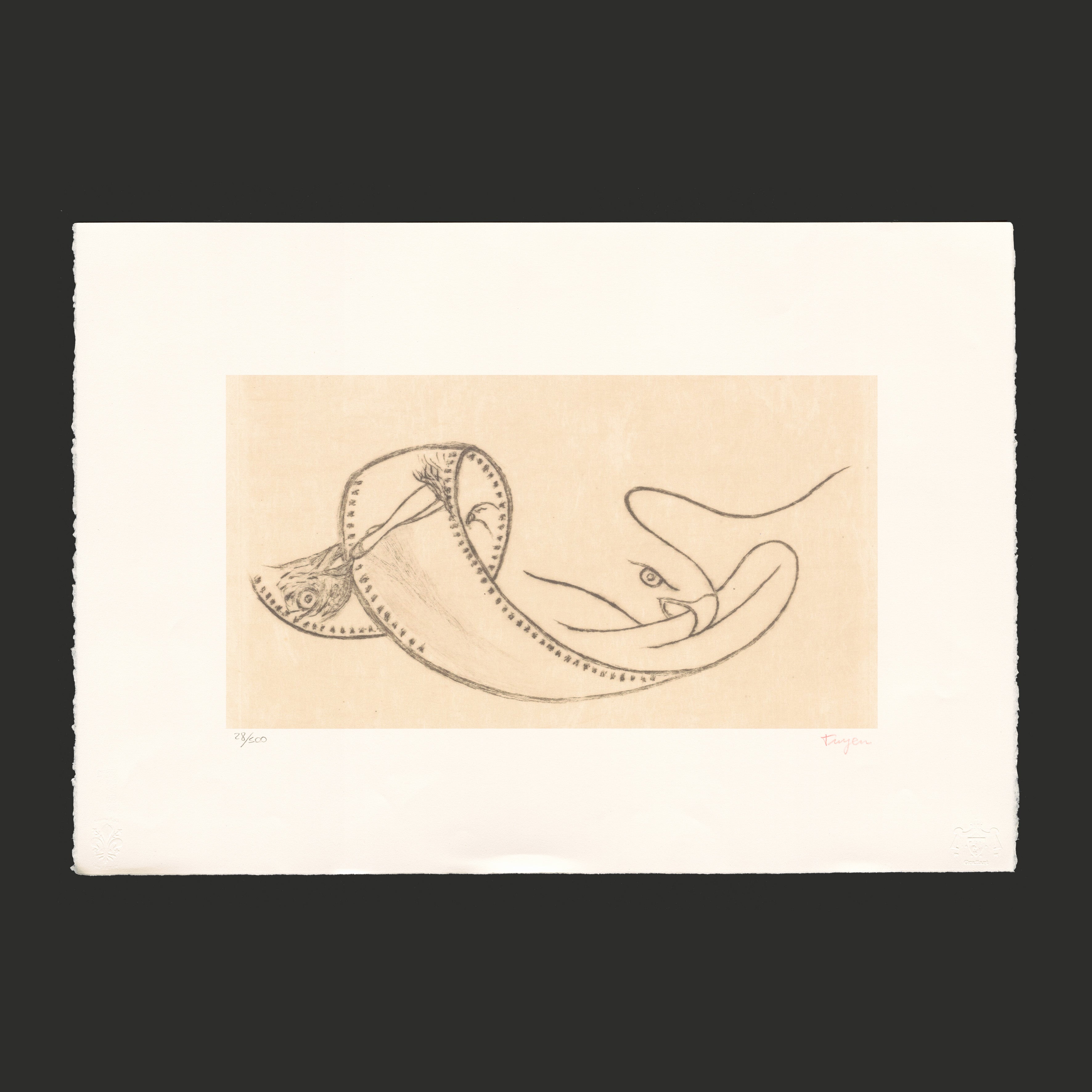 Certifikovaný grafický list, 47,7 x 66,5 cm. Číslováno 28/500. Certifikát, ruční papír BFK RIVES. Signováno vpravo dole Toyen. Slepotiskové razítko: Solema s.p.a., Grafiart Edition.