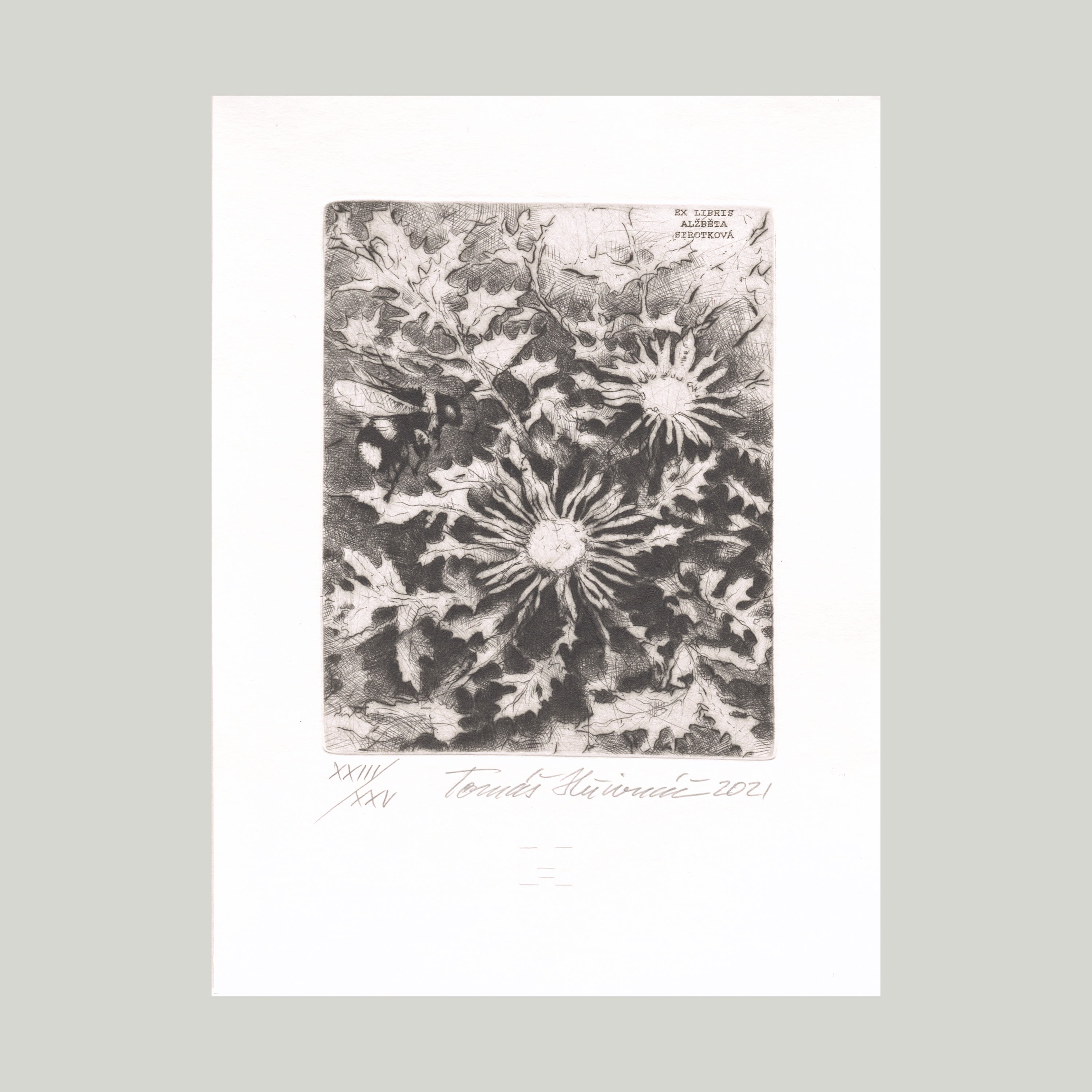 Suchá jehla 10x12,7 cm tisková plocha, 15x21 cm grafický list, číslováno XVII/XXX signováno Tomáš Hřivnáč, nerámováno