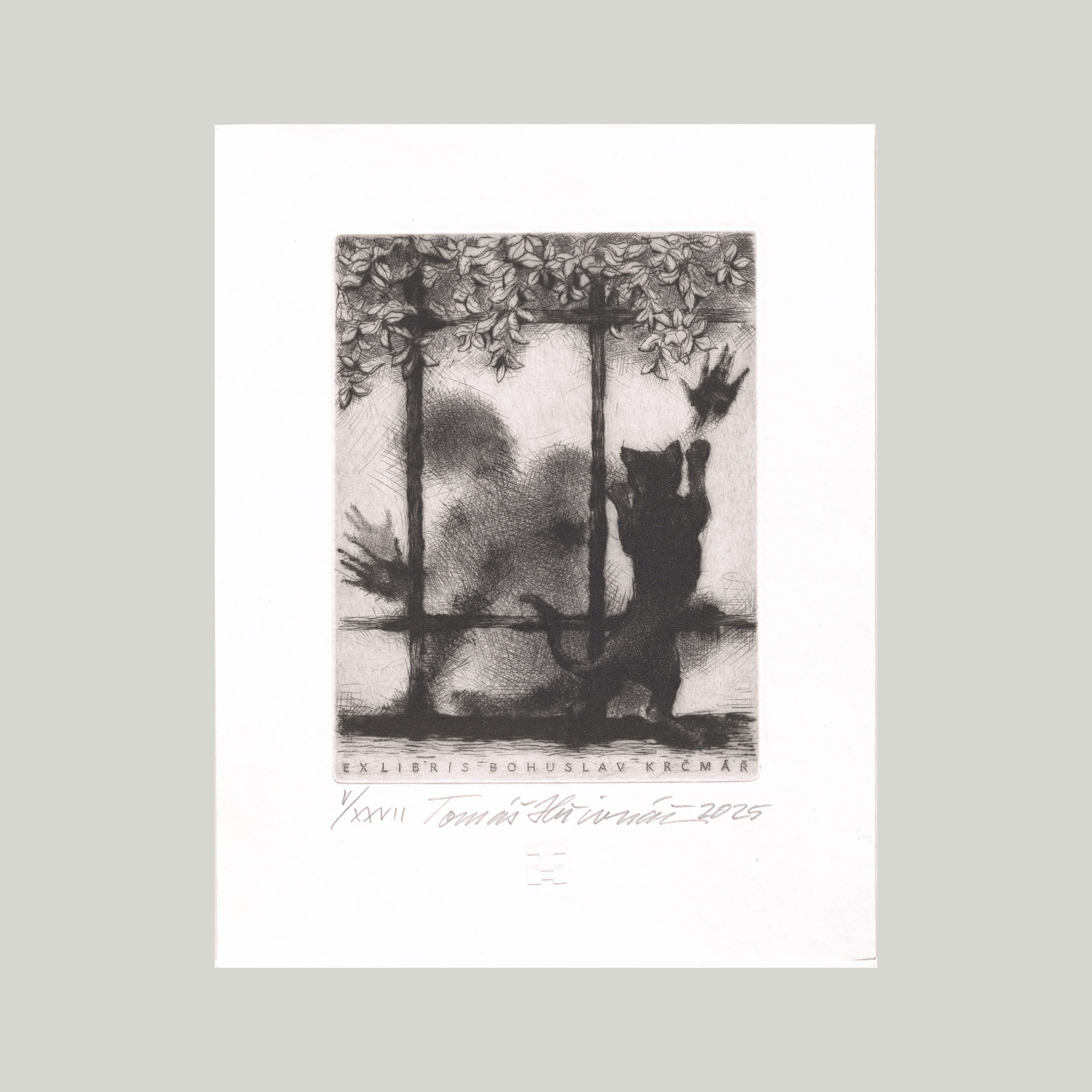 Suchá jehla 10x12,8 cm tisková plocha, 15x19,8 cm grafický list, číslováno VI/XXVII signováno Tomáš Hřivnáč, nerámováno