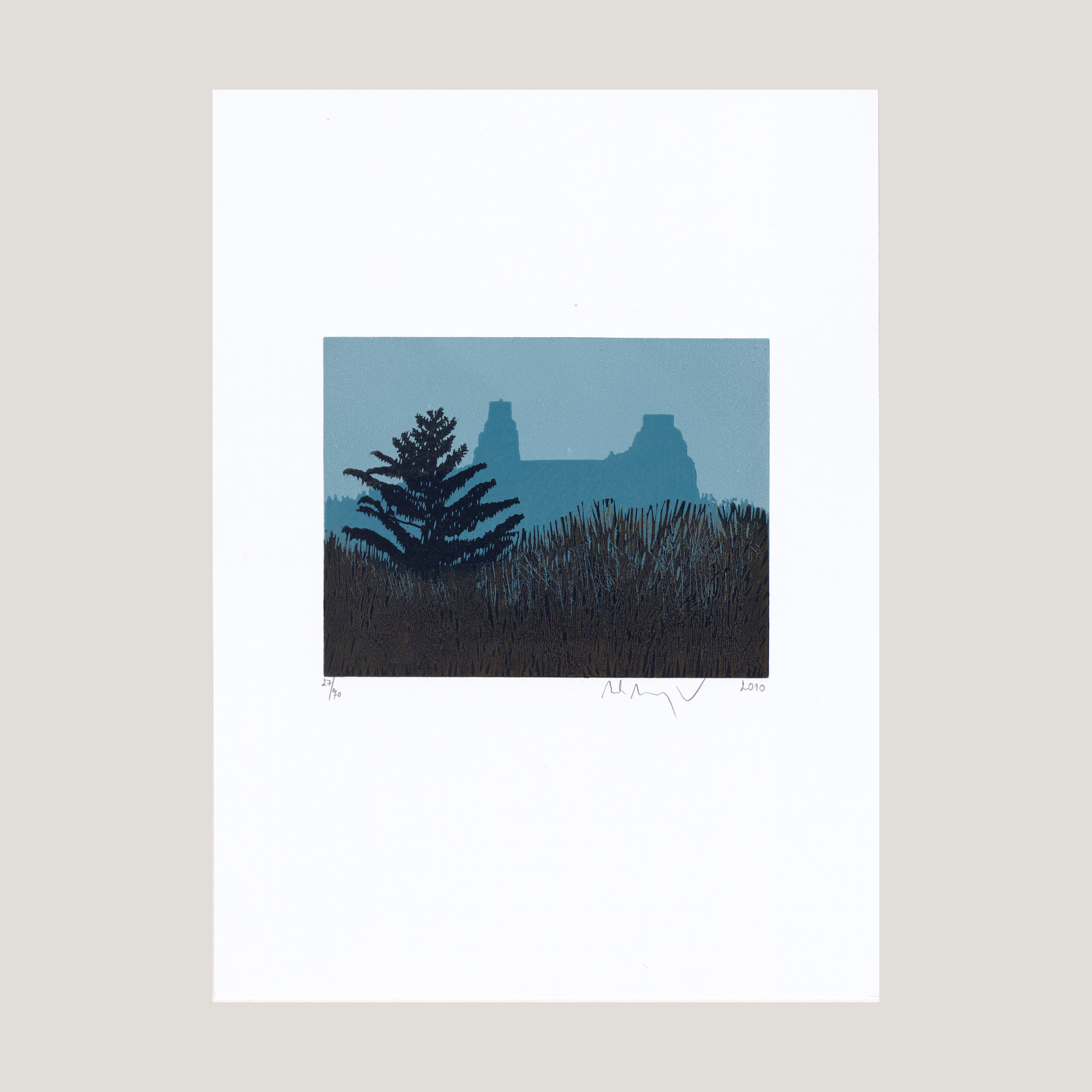 Barevný linoryt tisková plocha 14x11,5 cm, grafický list 21x29,6 cm číslováno 27/70, signováno M. Manojlín 2010