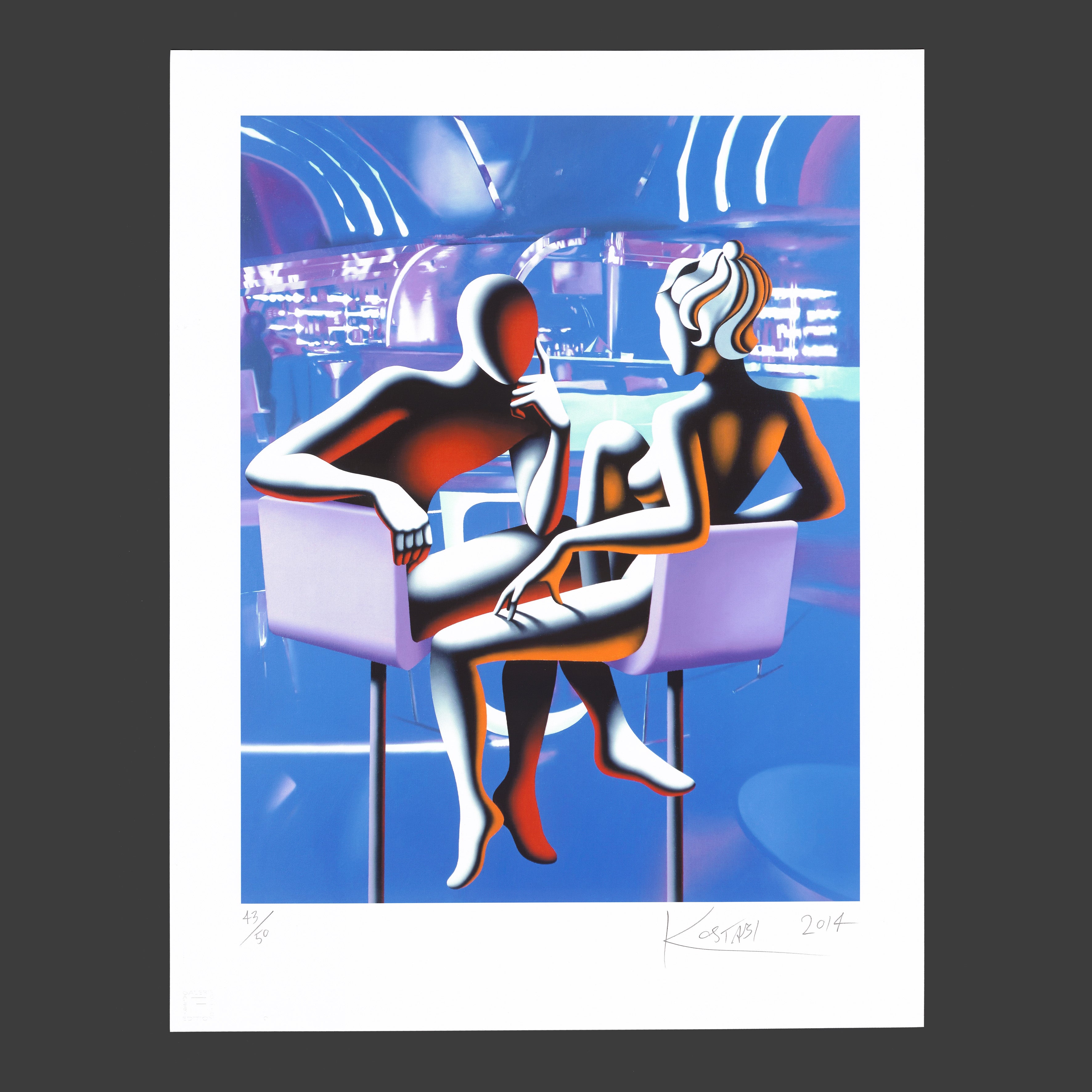 Giclée 61x81,8 cm. Signováno vpravo dole Kostabi 2014. Limitovaná edice 43/50. Slepotiskové razítko vydavatele díla. Ruční papír. Volný list.