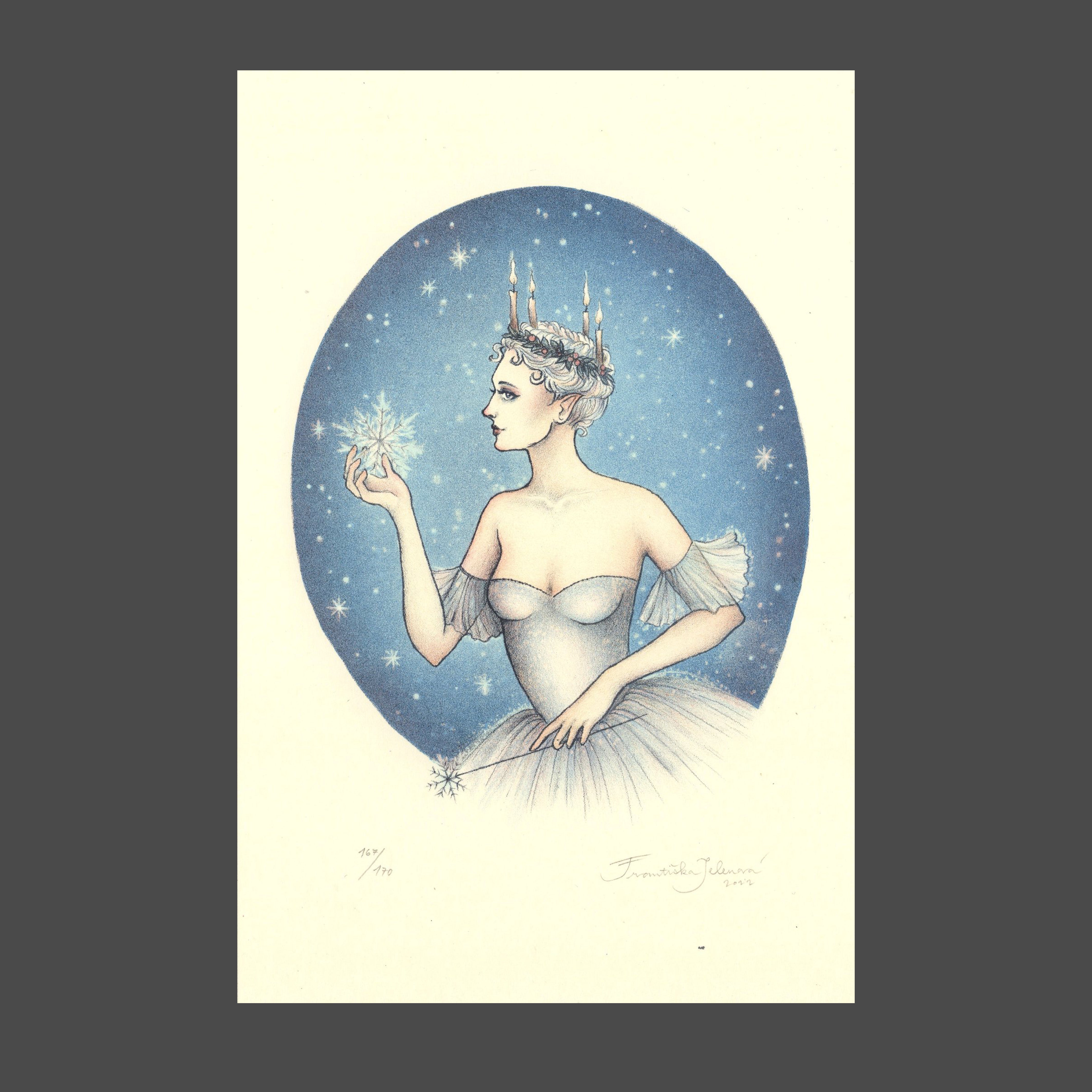 Litografie 12,2x18,2 cm, grafický list 154/170, signováno Františka Jelenová, volný grafický list - nerámováno