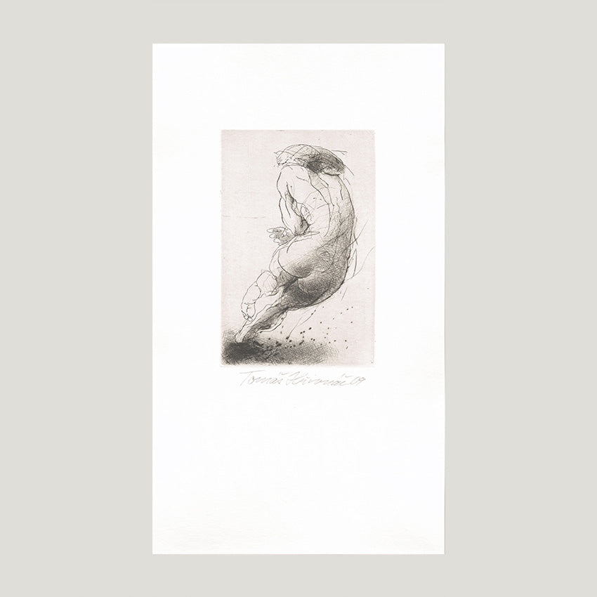 Grafika z publikace ŽENA JE ŽENA, 8 grafických listů Tomáše Hřivnáče, edice Opál, sv. 13, náklad 100, vydali pro své přátele v roce 2009. 7,7x12,3 cm tisková plocha, 15x26,7 cm grafický list číslováno 81/100, signováno Tomáš Hřivnáč 09, nerámováno.