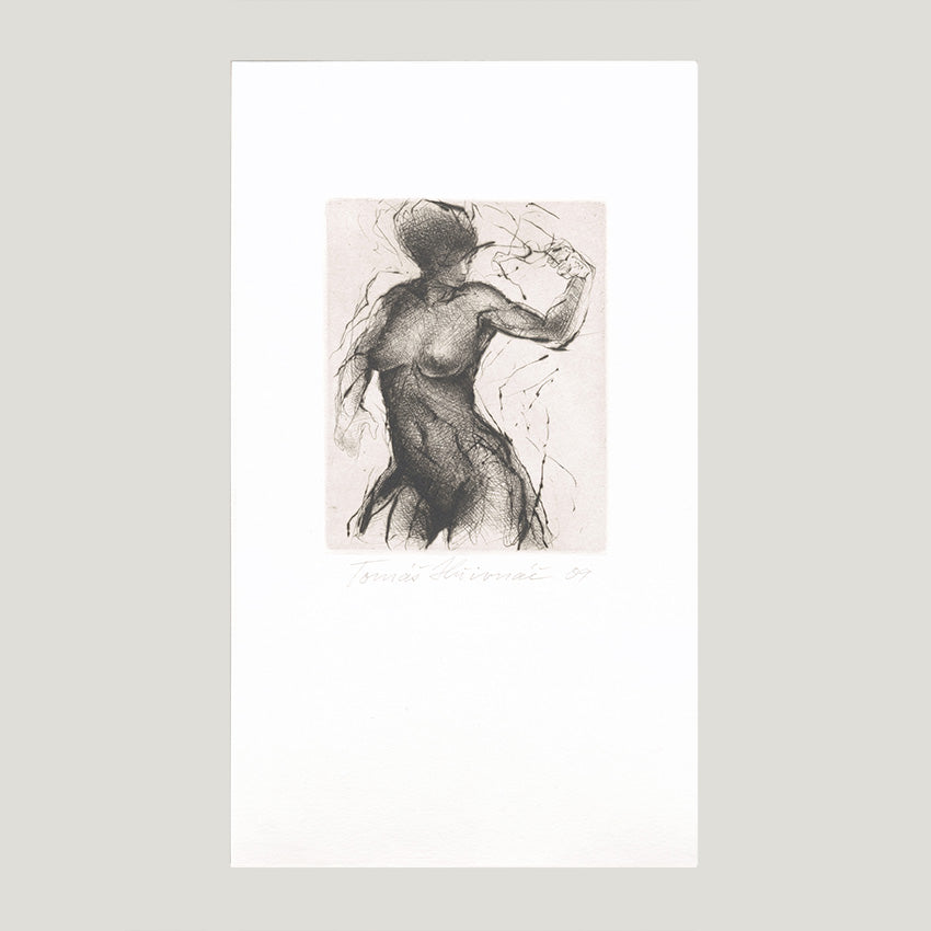 Grafika z publikace ŽENA JE ŽENA, 8 grafických listů Tomáše Hřivnáče, edice Opál, sv. 13, náklad 100, vydali pro své přátele v roce 2009. 8,9x11,5 cm tisková plocha, 15x26,7 cm grafický list číslováno 81/100, signováno Tomáš Hřivnáč 09, nerámováno.